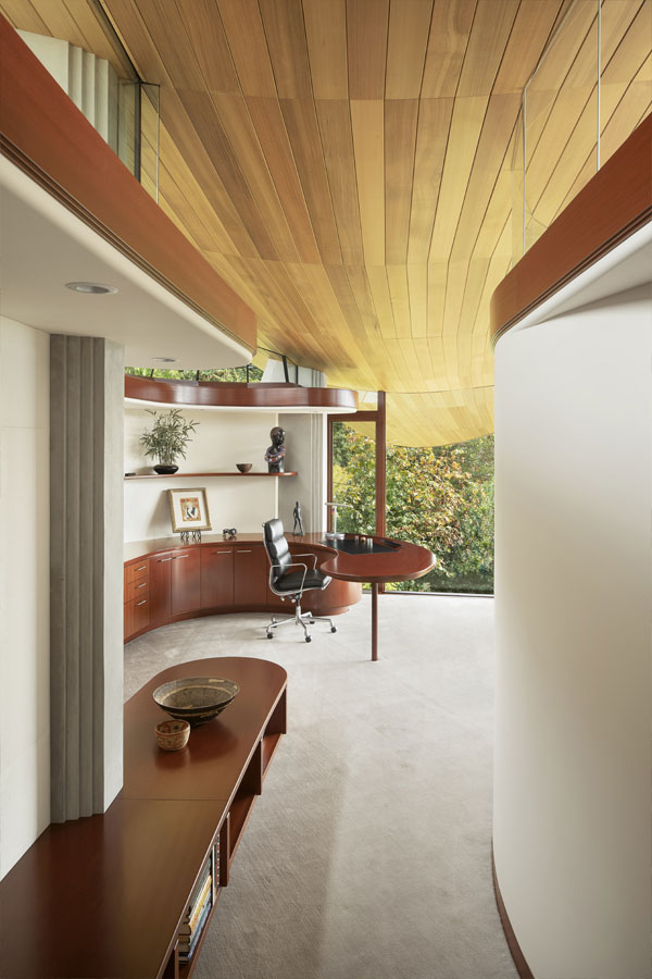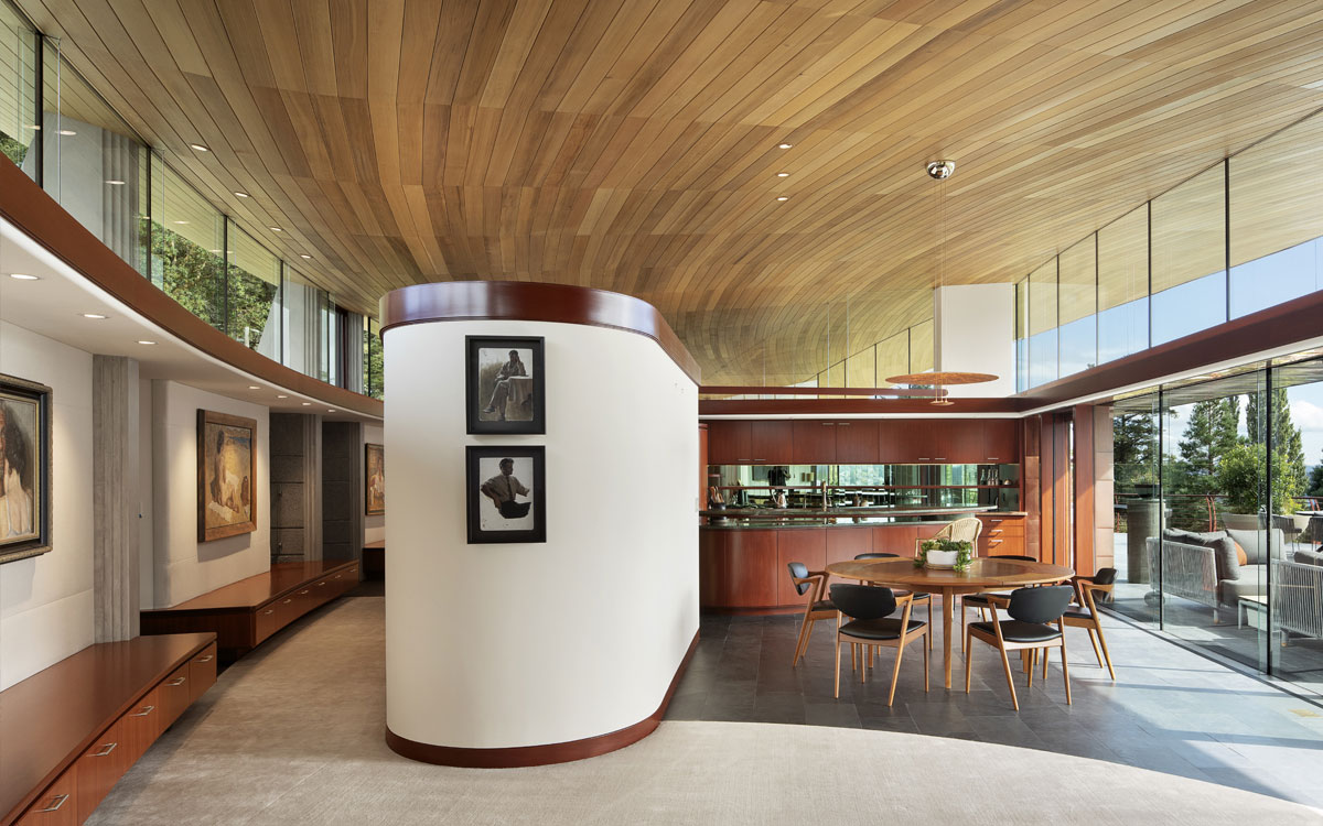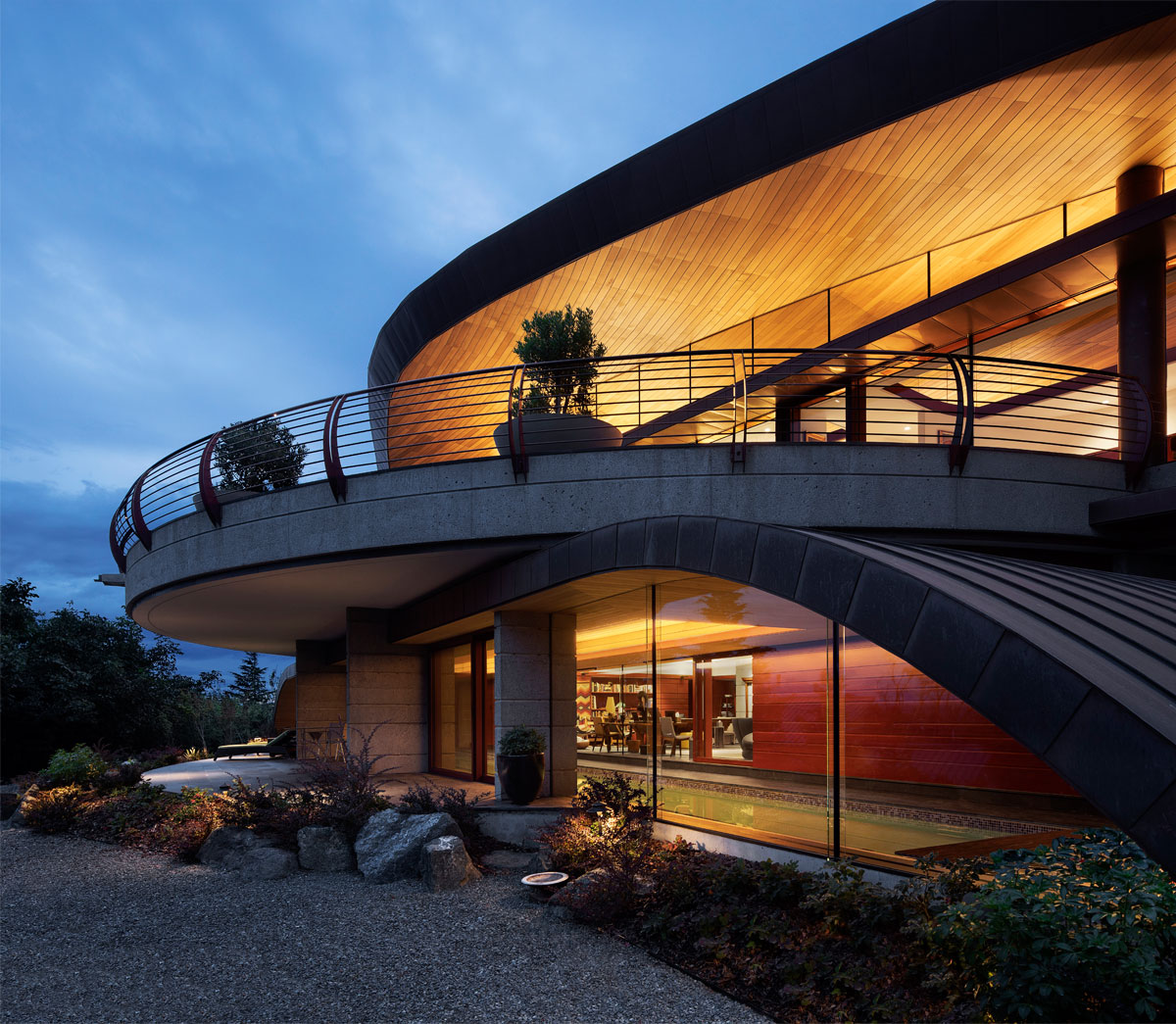 On the Olympic Peninsular on Puget Sound, Oshatz’ latest house was recently completed. in a small seaside town with a strong maritime heritage and is intrinsically connected to the sound. The residence grows out of the hillside with views looking over the town and spanning the sound with its emerald islands and rolling mist, and extend southwestward towards the spectacular Olympic mountains. To the South-East Mount Rainier appears as a shimmering white silhouette above the horizon |